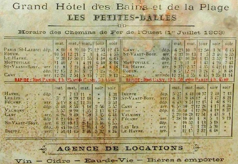 et les horaires des trains en 1903