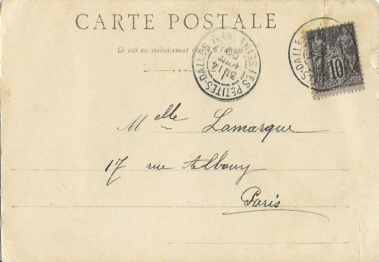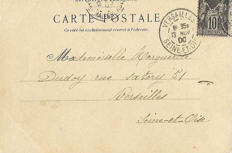 La deuxième est datée au recto du 12 novembre, sans préciser l'année, mais au verso on trouve un cachet de la poste de Versailles du 13 novembre 1900.