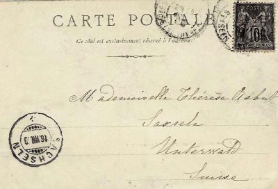 - le texte de la correspondance, le moment de l'expédition a été inscrit avec précision : 4 h (2 7bre 1900)