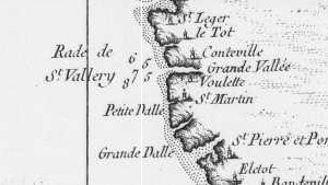 Cette carte, si elle est exacte, montre une curieuse disposition du trait de côte avec les Grandes-Dalles et Saint-Pierre-en-Port dans une même anse ou retrait de côte. Ce point est confirmé par la carte de Van Keulen.