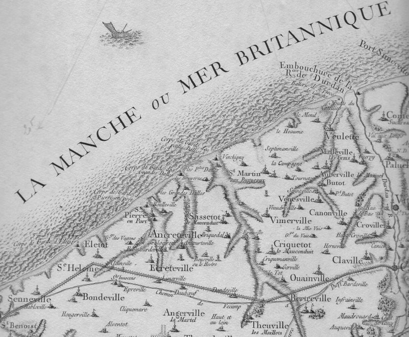Le tracé de la grande route Fécamp-Cany est indiqué de manière schématique.
