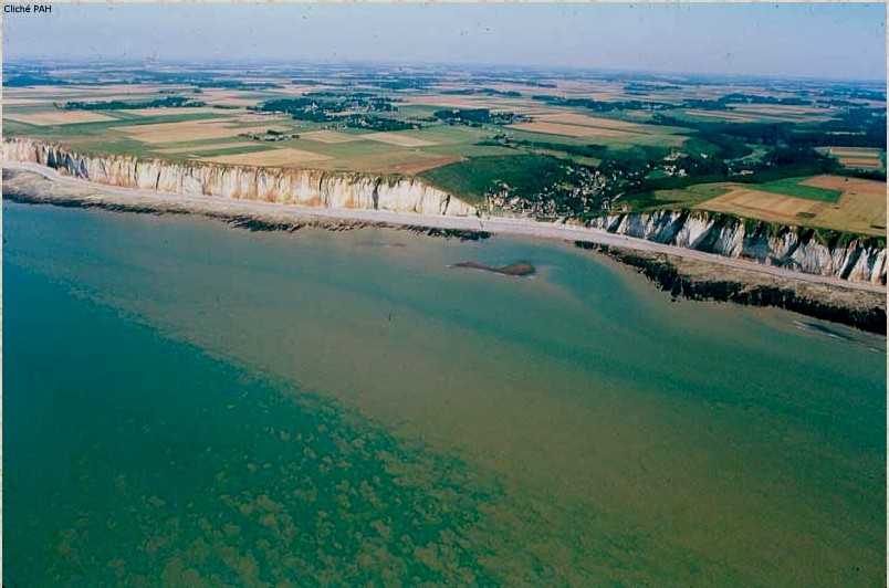 Le chenal existe bel et bien (on l'utilise pour sortir à basse mer) mais quelle est l'importance de l'érosion entraînée par le flux et reflux dans le bassin des Catelets par rapport à celle entraînée par le ruissellement de la pluie sur le plateau crayeux ? En revanche la carte des fonds-marins montre bien que les vallées se prolongent fort loin dans la mer. Le fichier est trop lourd pour que je vous l'adresse en fichier joint ce soir, mais il semble que les vallées de Saint-Pierre, des Grandes-Dalles et Petites-Dalles finissent par se rejoindre à plusieurs centaines de mètres de la côte actuelle. Il est probable que GD et PD se rejoignent quelque part au milieu, toujours d'après les fonds sous-marins. Aujourd'hui je ne sais pas encore à quoi attribuer l'origine des Catelets que les géologues appellent une "exsurgence"... Le nom de Catelet me fait simplement penser à un castel, donc à un fortin. Il est fort possible que les habitants aient appelé ce phénomène rocheux, car de loin il ressemblait à un fortin justement ! |