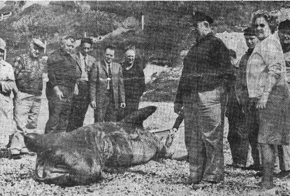 Toute la journée, de nombreux curieux sont venus voir l'animal qui n'est malheureusement pas comestible, sa chair rappelant vaguement celle du porc."