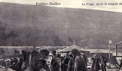 La photographie de la plage en 1901, figurant dans "l'album N°2 des photos anciennes des Petites-Dalles" est très intéressante.  La terre déversée sur la plage est très visible, à droite des personnages. Cette photographie permet donc de dater de 1901, la réalisation de ces travaux.
