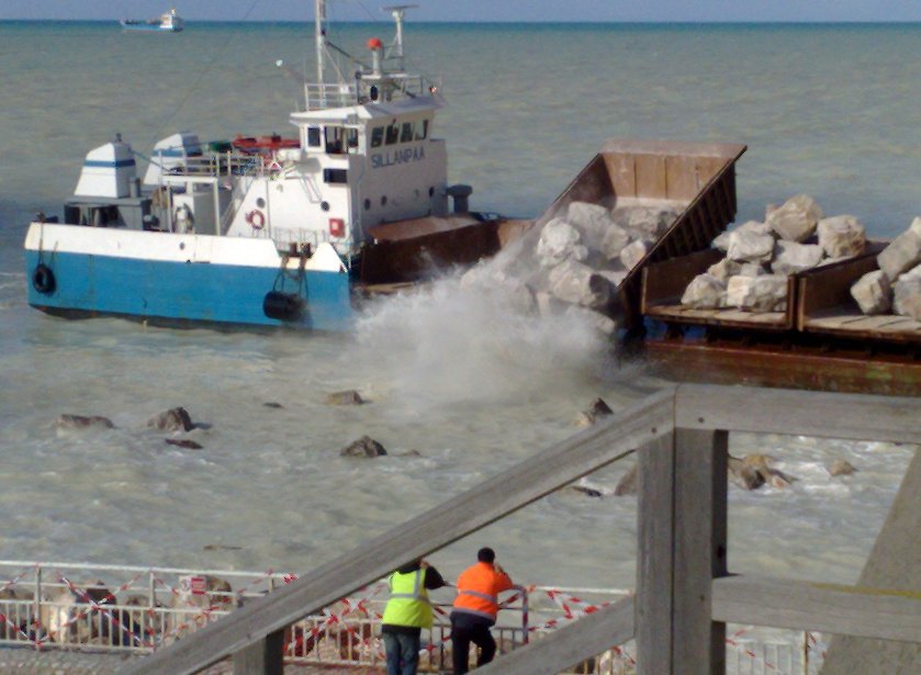 Les travaux d'enrochement à la plage, fin mars 2008