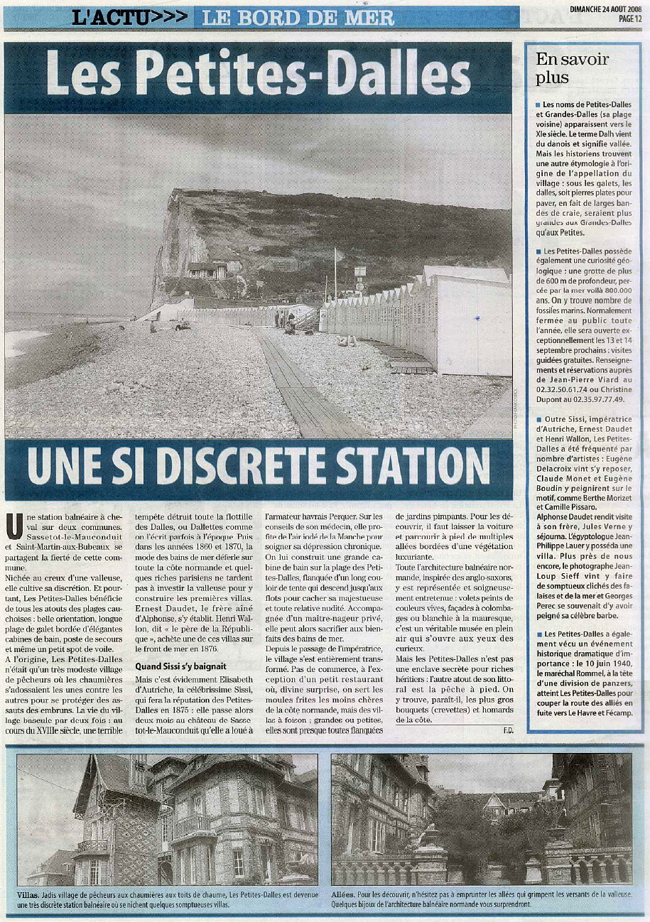 | Article sur les petites-Dalles paru dans Paris-Normandie le dimanche 24 août 2008 : | ![]() |