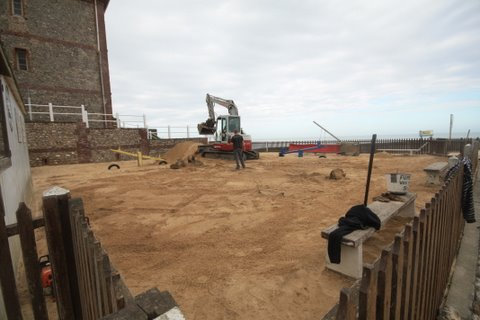 Quelques photos des travaux du terrain de jeux de la plage, adressées par Jérôme Seyer.