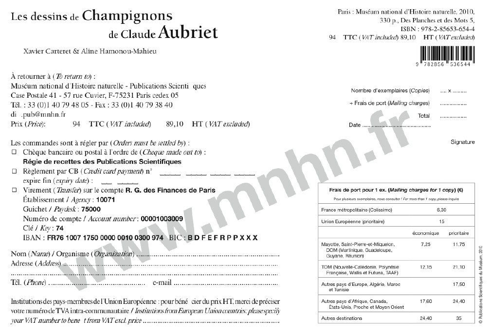 Les documents manuscrits de la famille des Jussieu, professeurs de botanique au Jardin du Roy puis au Muséum d'histoire naturelle (1710-1853) ont été acquis en 1858 par le Muséum après la mort d'Adrien de Jussieu. Conservés à la Bibliothèque centrale du Muséum ils forment un fonds riche d'informations pour l'histoire des sciences, particulièrement celle du Jardin et celle de la Botanique. Parmi les plus anciens se trouve un portefeuille contenant 98 dessins de champignons (en couleur), réalisés vers 1730, par Claude Aubriet (c. 1665-1742) sous la direction d'Antoine de Jussieu (1686-1758). Claude Aubriet, peintre miniaturiste au Jardin du Roy, est connu pour la réalisation des illustrations des Elémens de botanique que publie Joseph Pitton de Tournefort (1656-1708) en 1694. Ces dessins sont loués pour leur précision par Carl von Linné lui-même. Les dessins de champignons par Aubriet furent exécutés à une période «clé» dans l'histoire de la mycologie, puisqu'en 1729, Pier Antonio Micheli publie dans son ouvrage fondamental (Nova plantarum genera) une étude précise des champignons, accompagnée d'excellentes gravures en noir et blanc. Les réalisations d'Aubriet, souvent soignées et fidèles aux modèles, sont précieuses, car les représentations en couleurs de champignons sont rarissimes avant la fin du XVIIIe siècle. Elles témoignent en outre du regard que l'on portait alors sur ces cryptogames, qui apparaissaient bien mystérieux du point de vue de leur organisation, de leur reproduction et, pour tout dire, de leur «existence» même. Cette publication intéressera vivement les mycologues et contribuera à faire connaître Claude Aubriet. En outre, elle souligne le rôle décisif que les illustrateurs scientifiques ont toujours joué au cours de l'histoire. Docteur en Histoire et Philosophie des sciences (École des Hautes Études en Sciences Sociales), Xavier Carteret a étudié les travaux du naturaliste Michel Adanson (1727-1806) et l'histoire des classifications botaniques jusqu'à la fin du XVIIIe siècle. Il est également connu dans le domaine de la mycologie et de l'illustration mycologique. Docteur en Histoire de l'art moderne, Aline Hamonou-Mahieu a étudié pendant près de dix ans les collections de dessins et de vélins d'histoire naturelle de Claude Aubriet au Muséum national d'Histoire naturelle de Paris, à la Royal Horticultural Society et au Natural History Museum à Londres. Successivement employée par les Ministères de la Culture, de l'Enseignement et de la Recherche, de l'Éducation nationale, Aline Hamonou-Mahieu a écrit de nombreux articles pour des revues d'histoire de l'art et des sciences. |