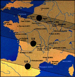 Trajet de l'éclipse totale du 11 août 99
