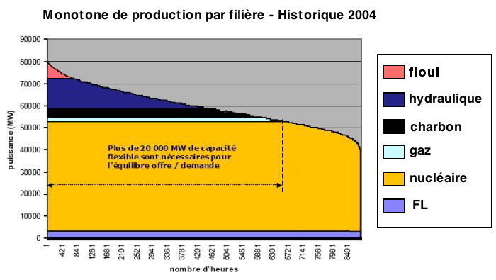 Si la France dispose d’une capacité de production importante de base (nous exportons 10% de notre production électrique nucléaire) nous manquons de moyens de production de pointe, d’où un effort nécessaire dans la construction de centrales thermiques propres (LFC à « lit fluidisé circulant », à cycle « ultra-supercritique » ou IGCC « à gazéification intégrée à un cycle combiné »).