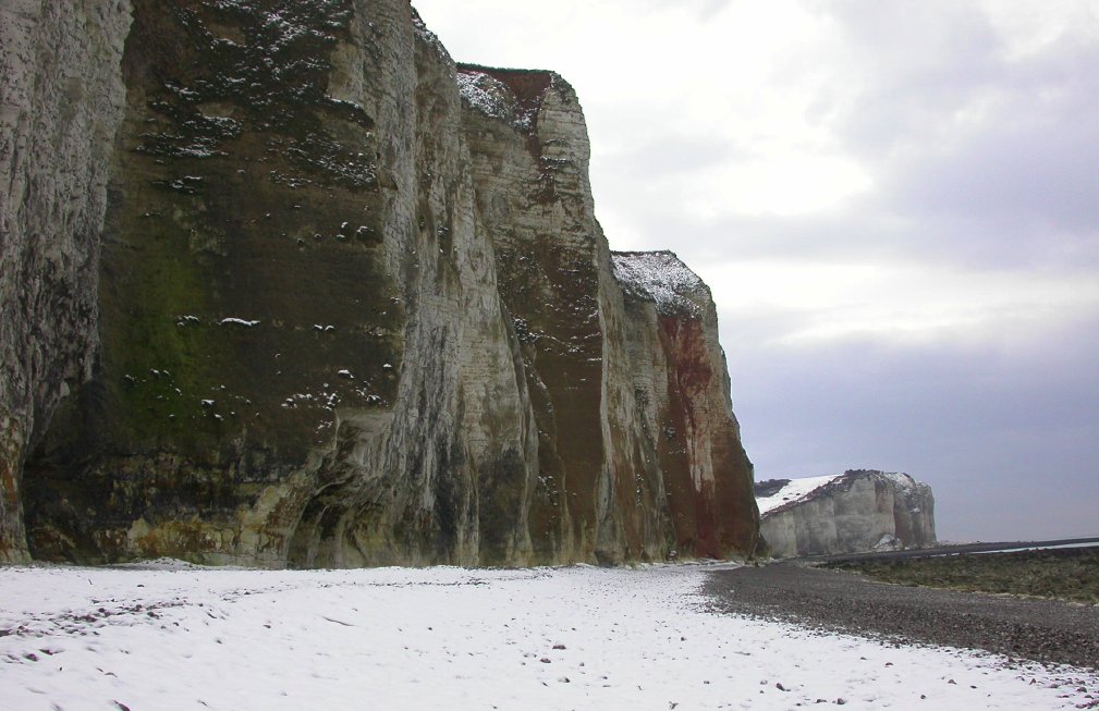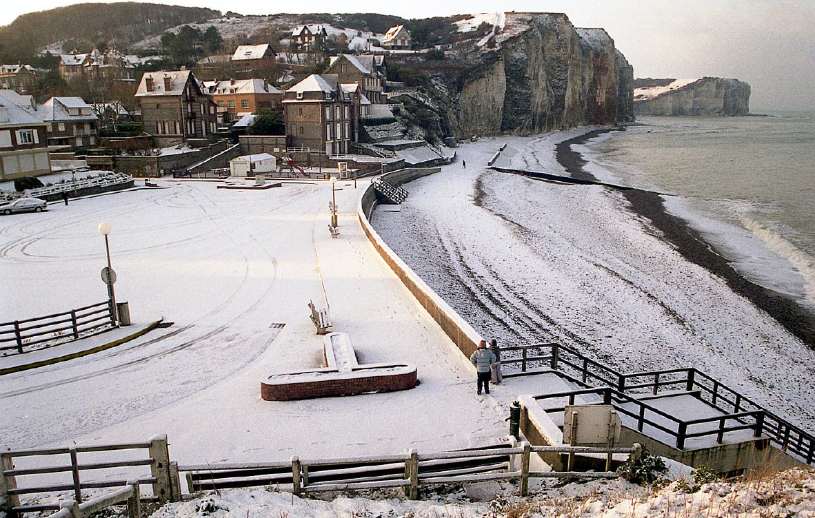 Un spectacle bien inhabituel, les Petites-Dalles sous la neige,