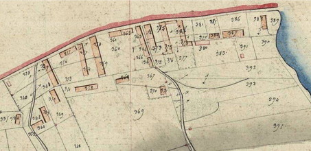 et le cadastre de 1824 qui indiquait un bâtiment orienté parallèlement