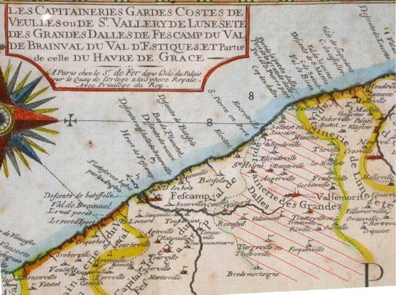 ![]() Carte des capitaineries des Gardes Côtes de 1640 |