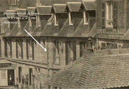 | Pour le bâtiment vous allez me dire que l'on peut démontrer tout et son contraire et qu'au final rien ne pourrait remplacer une vue réelle de ce bâtiment là que je prétends préexister à cette barre en front de mer... Oui un bâtiment avec un gros chien-assis central avec de part et d'autre trois chiens-assis, oui une photo comme celle-ci par exemple. | ![]() |