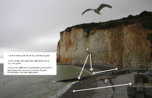 | Deux photos pour expliquer ce que cela change la présence d'un épi ou d'une jetée par rapport à un simple chemin... |