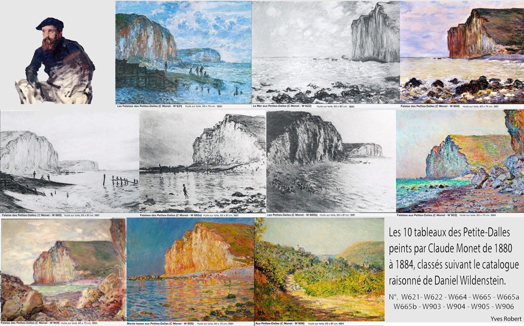 ![]() collection privée | ![]() Marée basse aux Petites-Dalles (1884) 60 x73cm Tableau vendu chez Sotheby's le 9 mai 2016 à un collectionneur privé européen pour 9.882.000 dollars. (Signalé par Yves Robert) | ![]() Falaise des Petites-Dalles (1884) en vente chez Christie's Hong-Kong le 26 novembre 2017 |