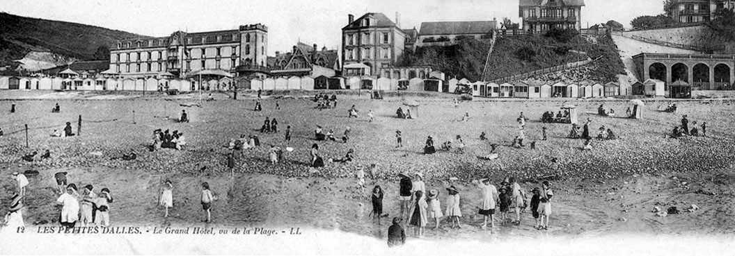 Montage panoramique de la plage vers les années 1900