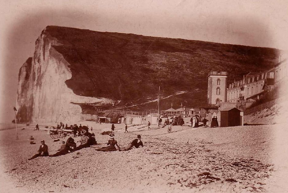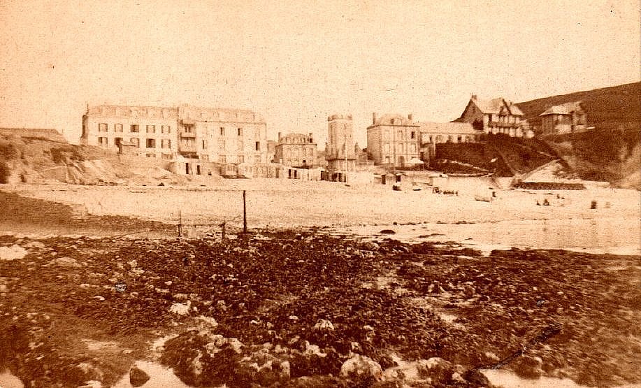 Le front de mer probablement à l'été 1880, l'Hôtel des Bains est agrandi (1880) mais le chalet Wallon (l'Epine) non visible (1881) (photo adressée par Martine Samson). |
