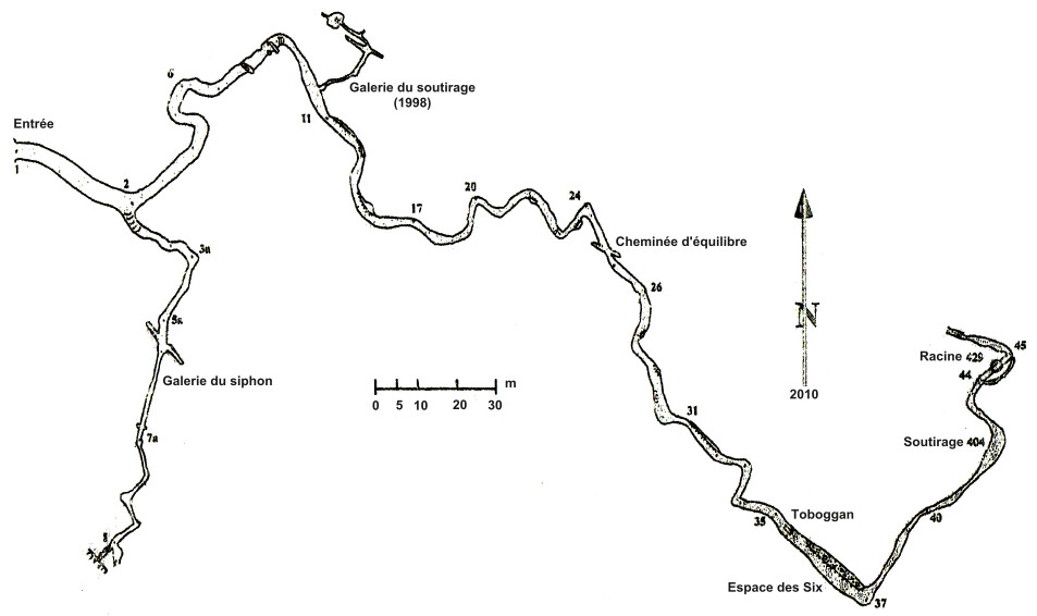 Topographie de la grotte des Petites-Dalles, d'après les relevés du CNEK.